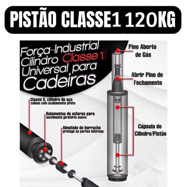 Combo Reparo Cadeira Giratória – Pistão Classe 1 + 5 rodizios
