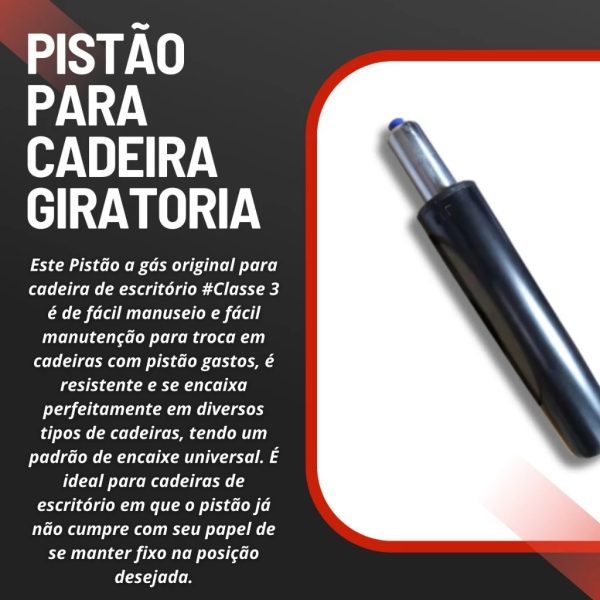 O PISTÃO TEM TAMANHO PADRÃO PARA CADEIRAS NACIONAIS E ALGUMAS INTERNACIONAIS.